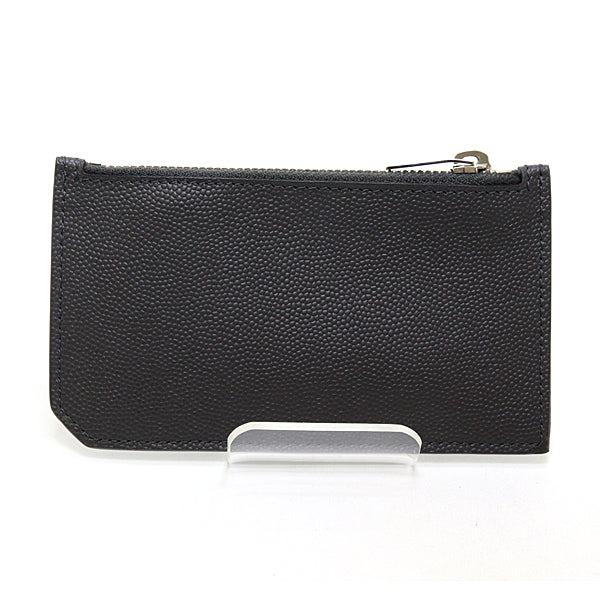 ◆SAINT LAURENT Zip Card Case 346104 coin purse Leather Dark Gray.