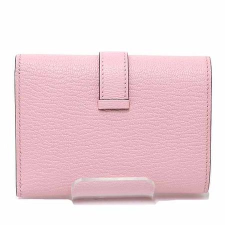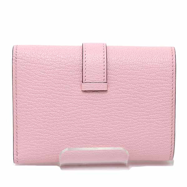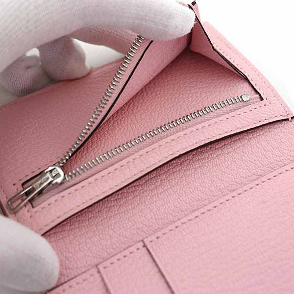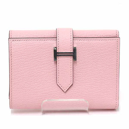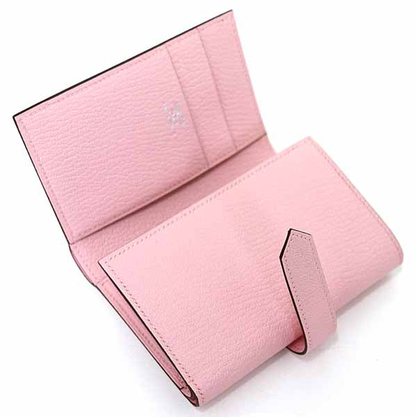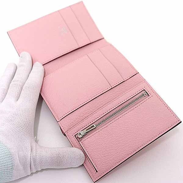 HERMES Tri-fold wallet Bean combine Chevre Leather Women Rose darling Unused