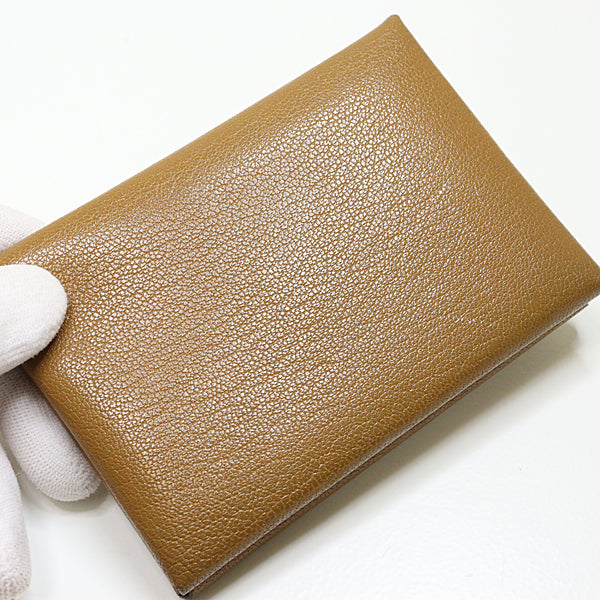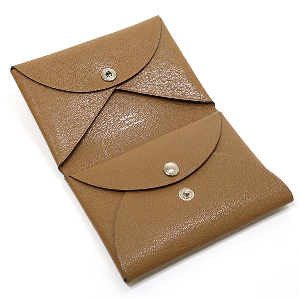 HERMES Card Case Calvi duo wallet Leather gold Men