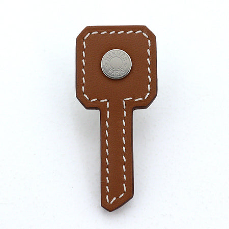 HERMES Brooch Pin Badge Cle Vau & Swift leather Unisex Gold 10g