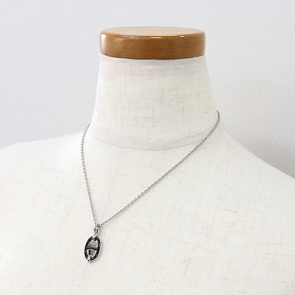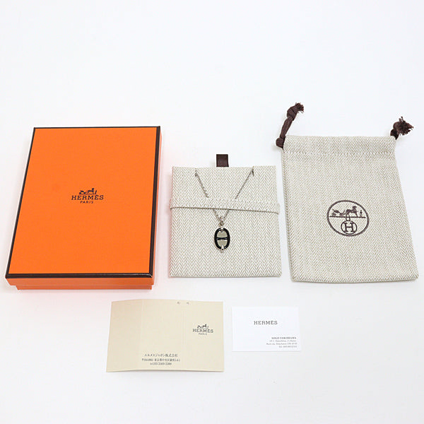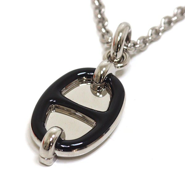 ◆HERMES Pendant Mini Maillon PM Black Silver Necklace.