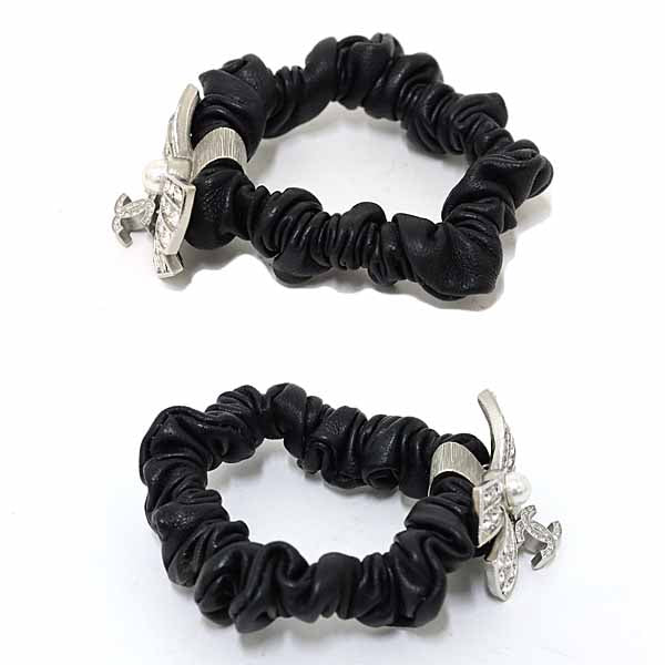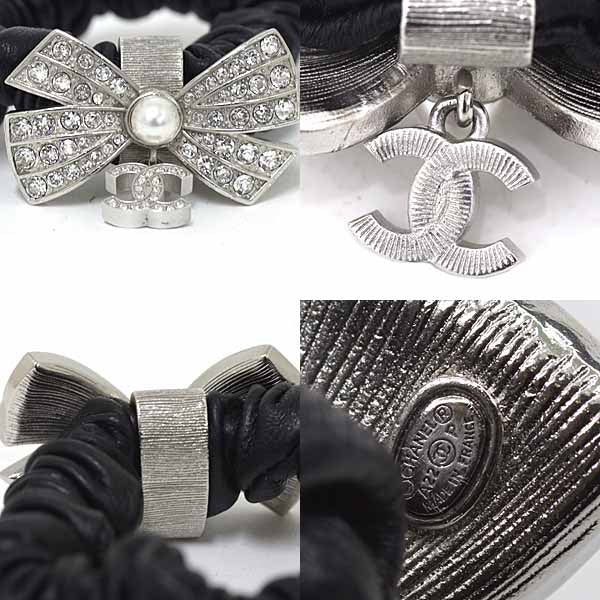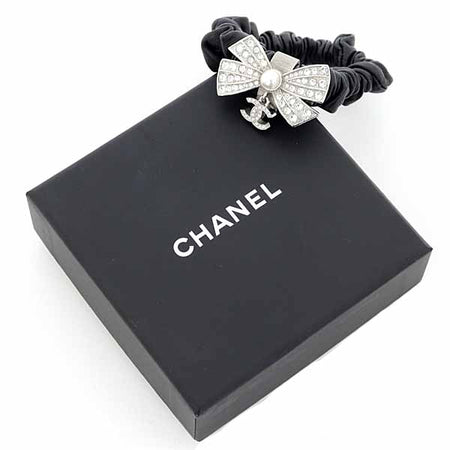 [Notes] ◆ CHANEL Scrunchie Hair Accessory COCO Mark Ribbon Rhinestone Faux Pearl Leather Metal A22P.