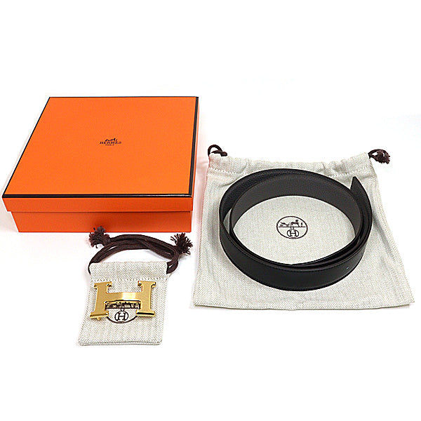 HERMES Belt Buckle H & Leather Belt 32 Togo Black/Gold Men Size95