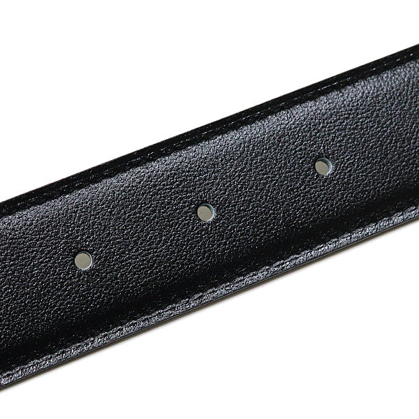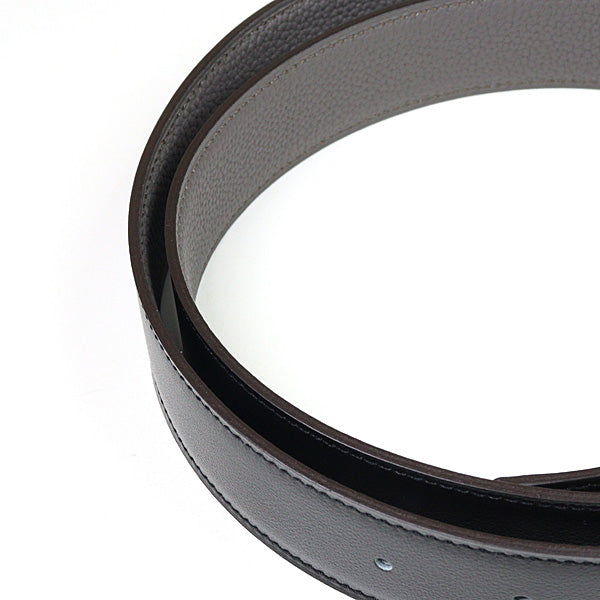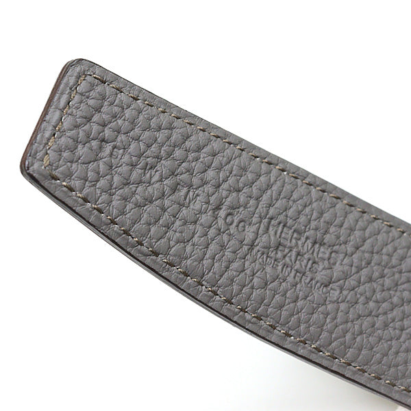 Elegant leather belt with the iconic "H" buckle. Reversible. Box calf 135/black Togo leather/Etain 32.