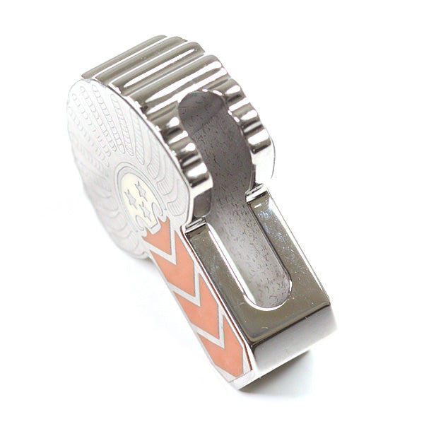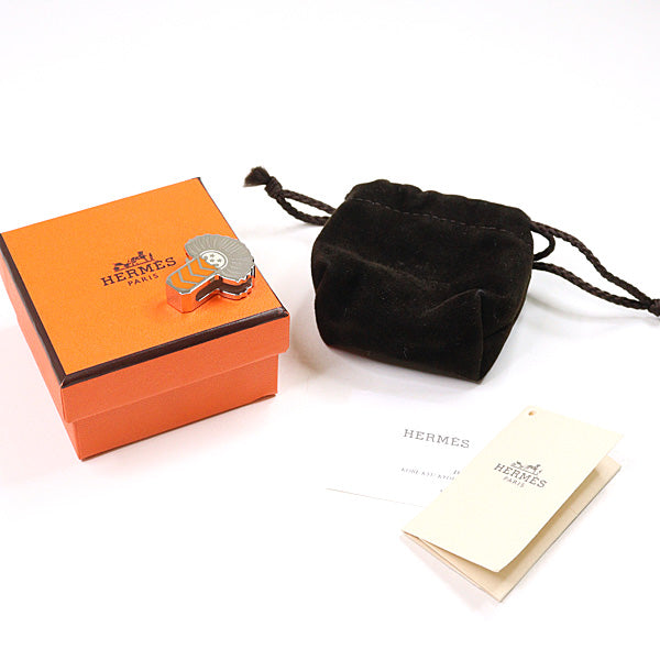 HERMES Scarf Ring Epaulette Twilly Gavirosh metal Silver/Orange 12g