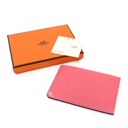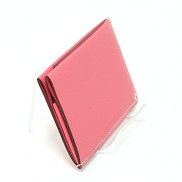 HERMES Card Case H Series Evercolor Rose azare Women 28g W