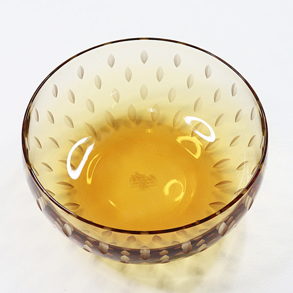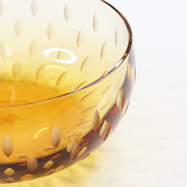 ◆A set of two bowls made of amber-colored crystal with rhythmic teardrop-shaped cuts.