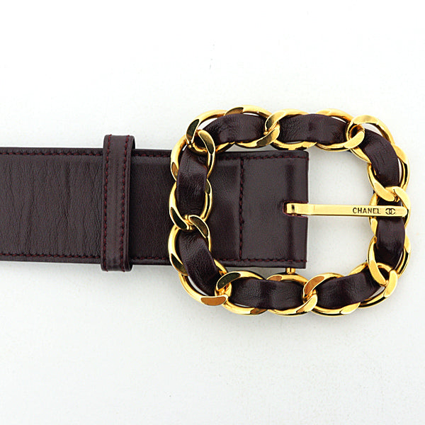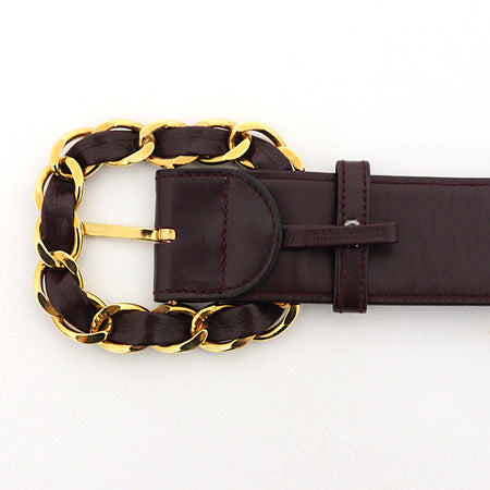 Chanel CHANEL Chain Buckle Leather Belt Burgundy Lambskin [Used] A Rank.
