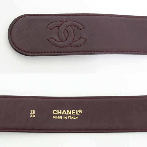 CHANEL Belt Chain buckle Lamb Leather Burgundy Women 75/30