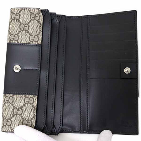 [Notes] Gucci Bicolor Long Wallet Purse Outlet GG Supreme 779878 Beige/Ebony Black.