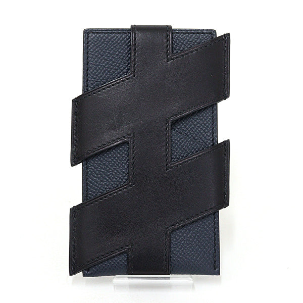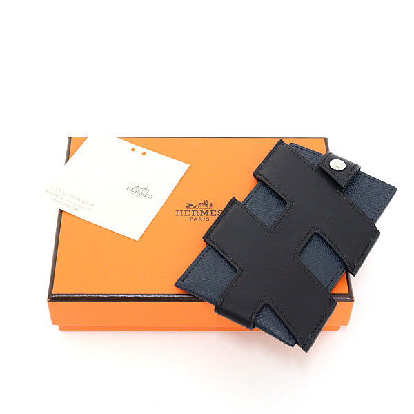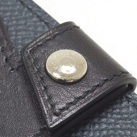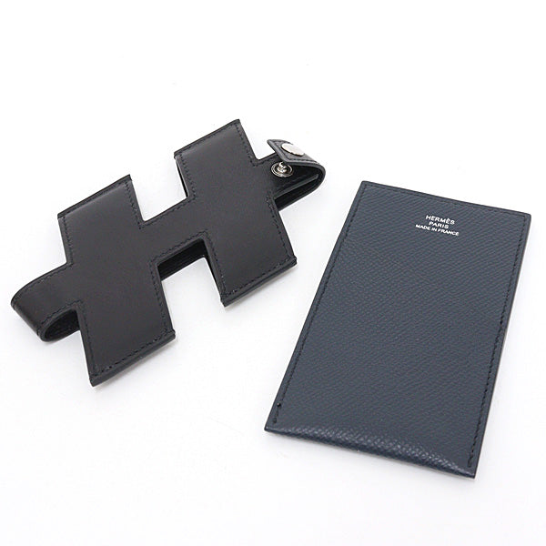 HERMES Card Case H Tag Document Holders Epsom Black/Blue Indigo Unisex