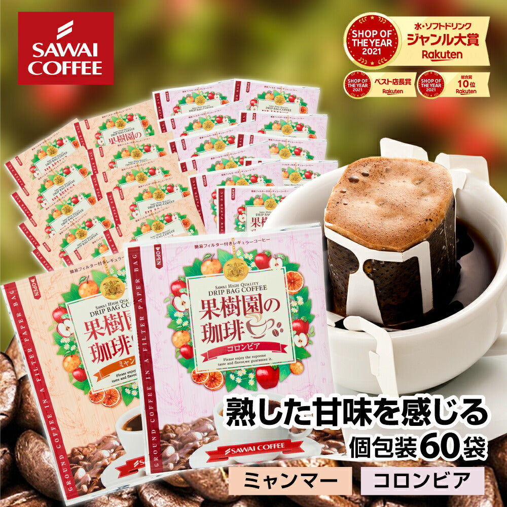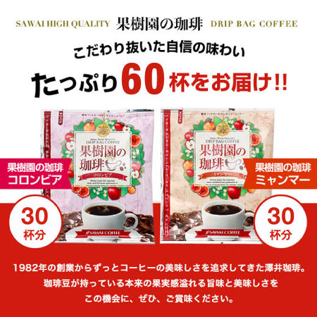 - Sawai Coffee Coffee Specialty Store Orchard Coffee Drip Bag Coffee 2 Types 60 Cups Set (Orchard Coffee Myanmar 30 Bags / Orchard Coffee Columbia 30 Bags)