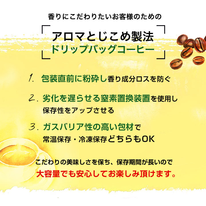 The advantage of drip coffee is that you can store fresh ground coffee in a bag and drink it one cup at a time.