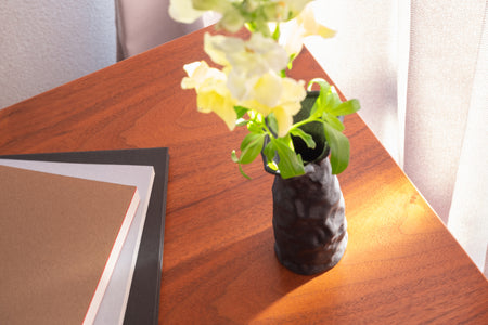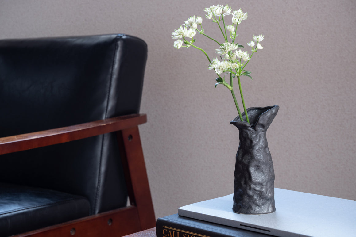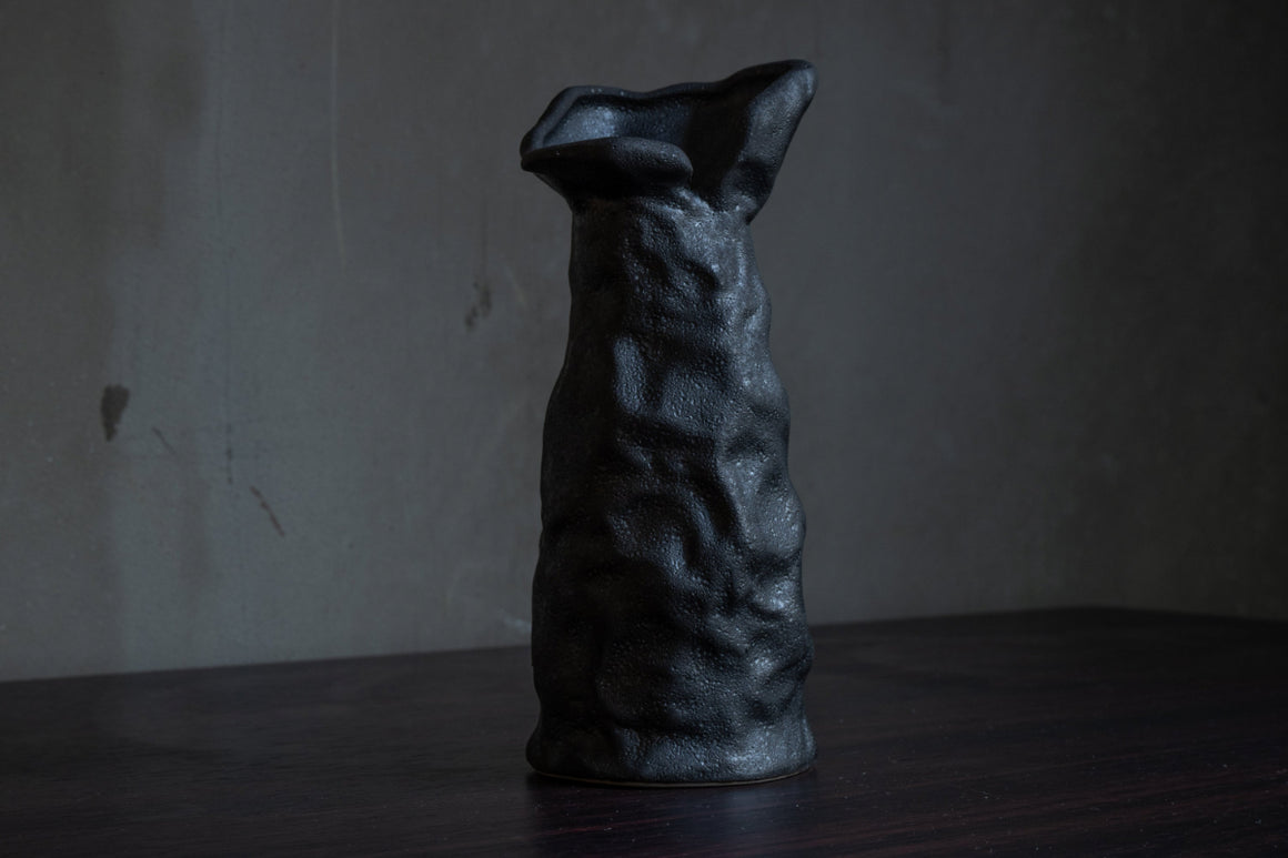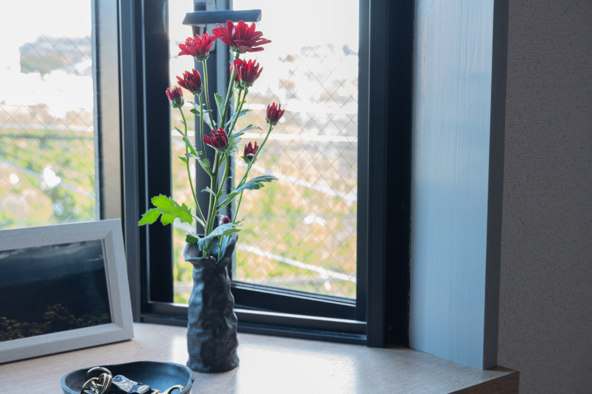 The black color of the vase is created using a method called "iron glaze" (iron black glaze). This is a method that causes a coloring reaction with the iron oxide contained in the glaze, and is one of the typical glazing methods for Seto ware. The rough texture of the surface and the calm, quiet black color give it a somewhat "Iwao" atmosphere. - Precautions for use