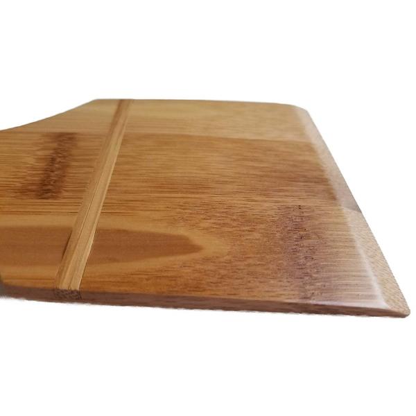 - The large size flip spatula makes it easy to turn inside out! Country of Origin: Japan Production: Kagoshima Prefecture Size: 11"x4.5" Made in Japan by carbonizing bamboo (bamboo steamed in a high-pressure cooker), it is light and durable. Since it is thinly painted with urethane, it is hard to stain, and it is wooden so it does not damage the iron plate.