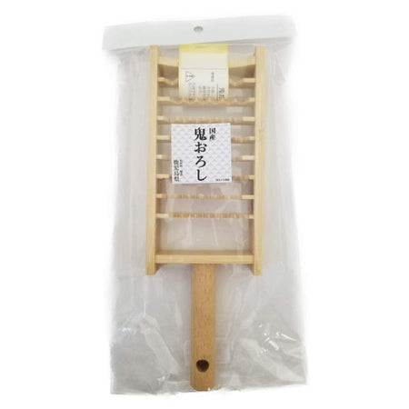 - This name comes from the fact that the blade of bamboo is reminiscent of a demon's tooth. Because it can be grated coarsely, it is difficult for water and dietary fiber to escape, and it is possible to create a crunchy grated radish. It is also recommended to use it at the dining table. Country of Origin: Japan Manufacturing/Materials: Oita Prefecture Size: 26.5x8.8 cm
