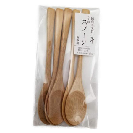 - A light and durable bamboo spoon made in Japan. It does not easily transmit heat, so it is gentle to the touch. Material: Oita Prefecture Production: Oita Prefecture Size: 5.1" Quantity: 5 Spoons Domestic Soot Curved Spoon Fashionable Wood Bamboo Made in Japan Kikusui Mother's Day Father's Day Gift