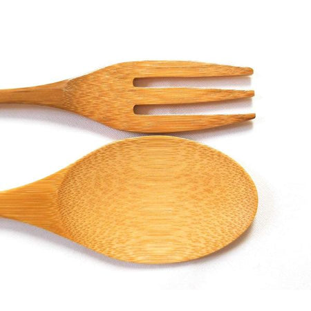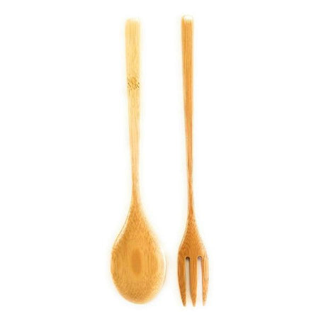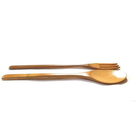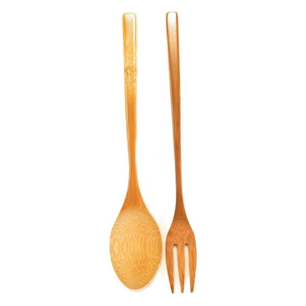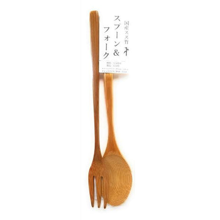 - Bamboo spoon and fork set. Metal spoons make a clattering sound every time they touch the tableware, but this spoon does not make any unpleasant sounds and you can use it comfortably. Country of Origin: Japan/Materials: Oita Prefecture Size: Fork 7.9"x0.9" Spoon 7.7"x1.5" Light and easy to use Does not damage dishes Stylish appearance. Spoon Fork Set Fashionable Wood Bamboo Made in Japan Domestic Soot Bamboo 1 Pair Kikusui