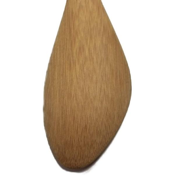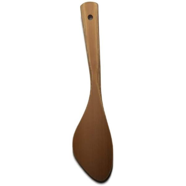- Taking advantage of the natural rounded shape of bamboo, it is shaped like a scoop to make it easier to mix ingredients. It has excellent design because it makes use of the original shape. Bamboo is made in Japan and has been carbonized. The bamboo fiber is durable, so it will last a long time without being crushed. In addition, the handle is made thick so it is easy to hold, and since Wooden has low thermal conductivity, the handle does not get hot and can be used safely. For left-handers only. Material: Domestic Bamboo Manufacturing: Kagoshima Prefecture Size: 11.8"x2.8"