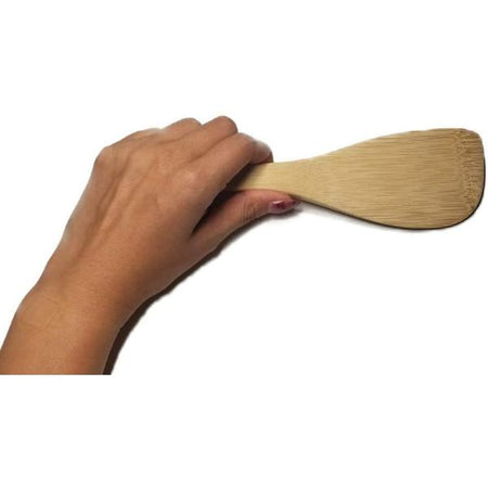 - A left-handed rice paddle made from Japanese bamboo that has been soot treated (carbonized). Bamboo is hard to scratch the pot, and it is characterized by being comfortable in the hand without heat transfer. Unlike ordinary rice scoops, the corners are angled so that it is easy to scoop. It is made unpainted for those who are concerned about painting. For left-handers. Material: Domestic Bamboo Production: Kagoshima Prefecture Size: 8.1"x2.4"