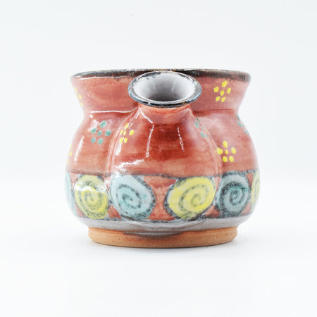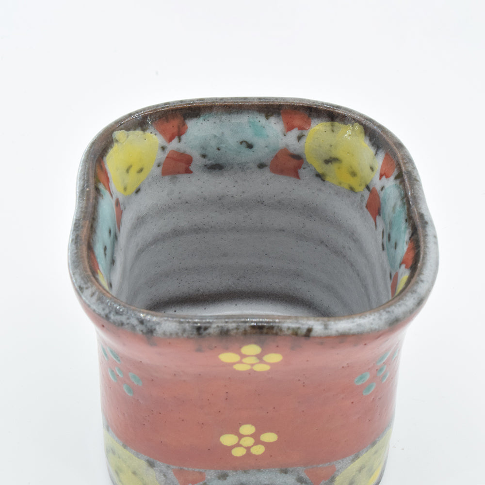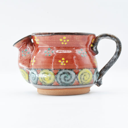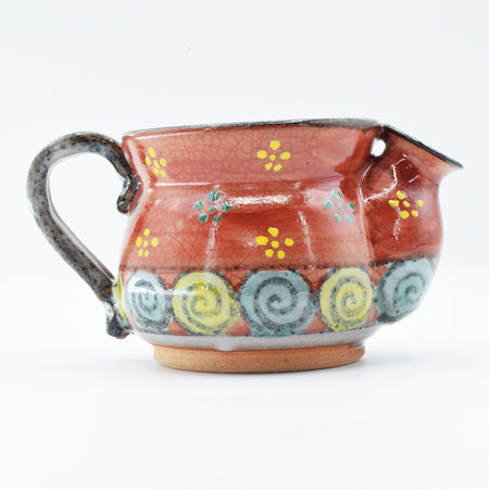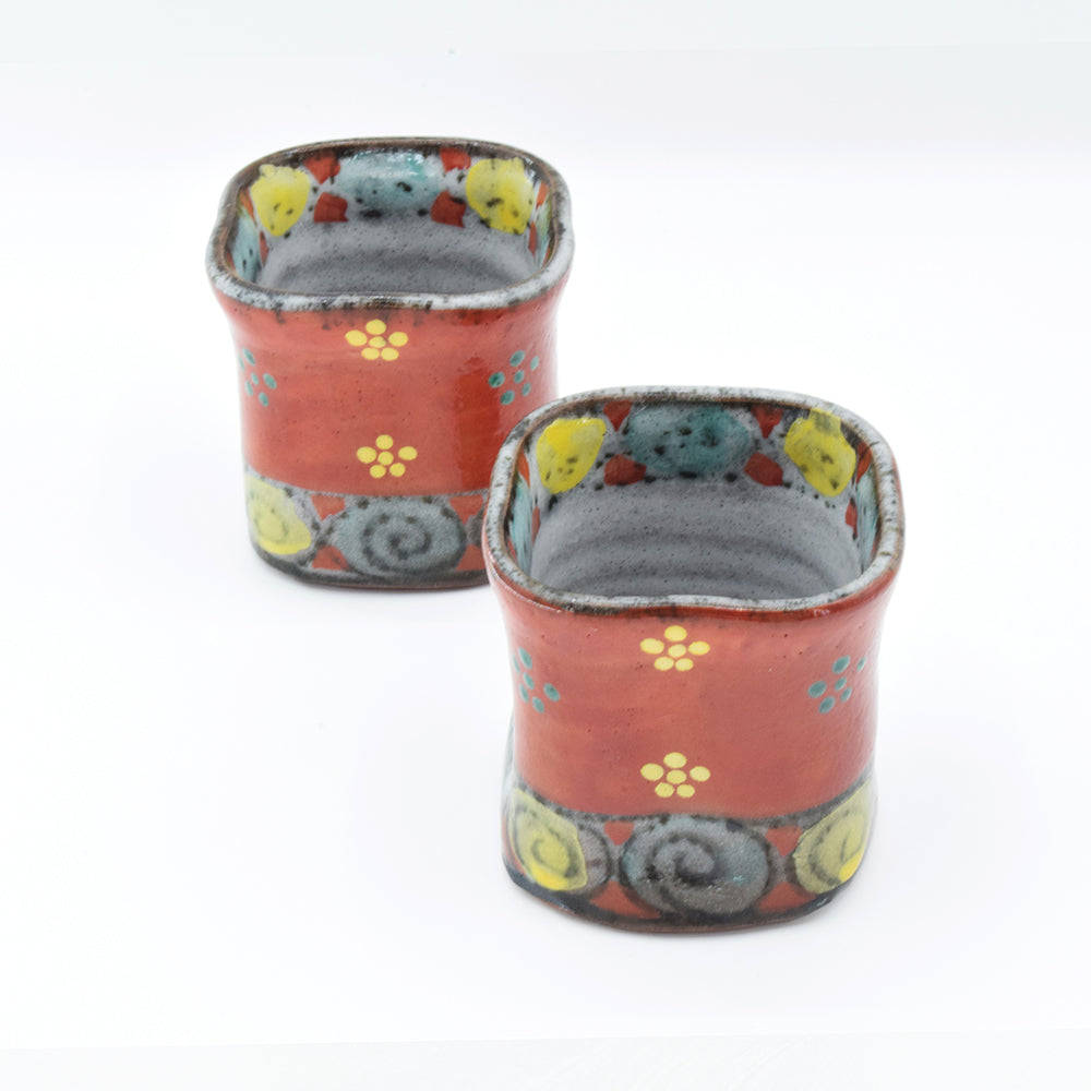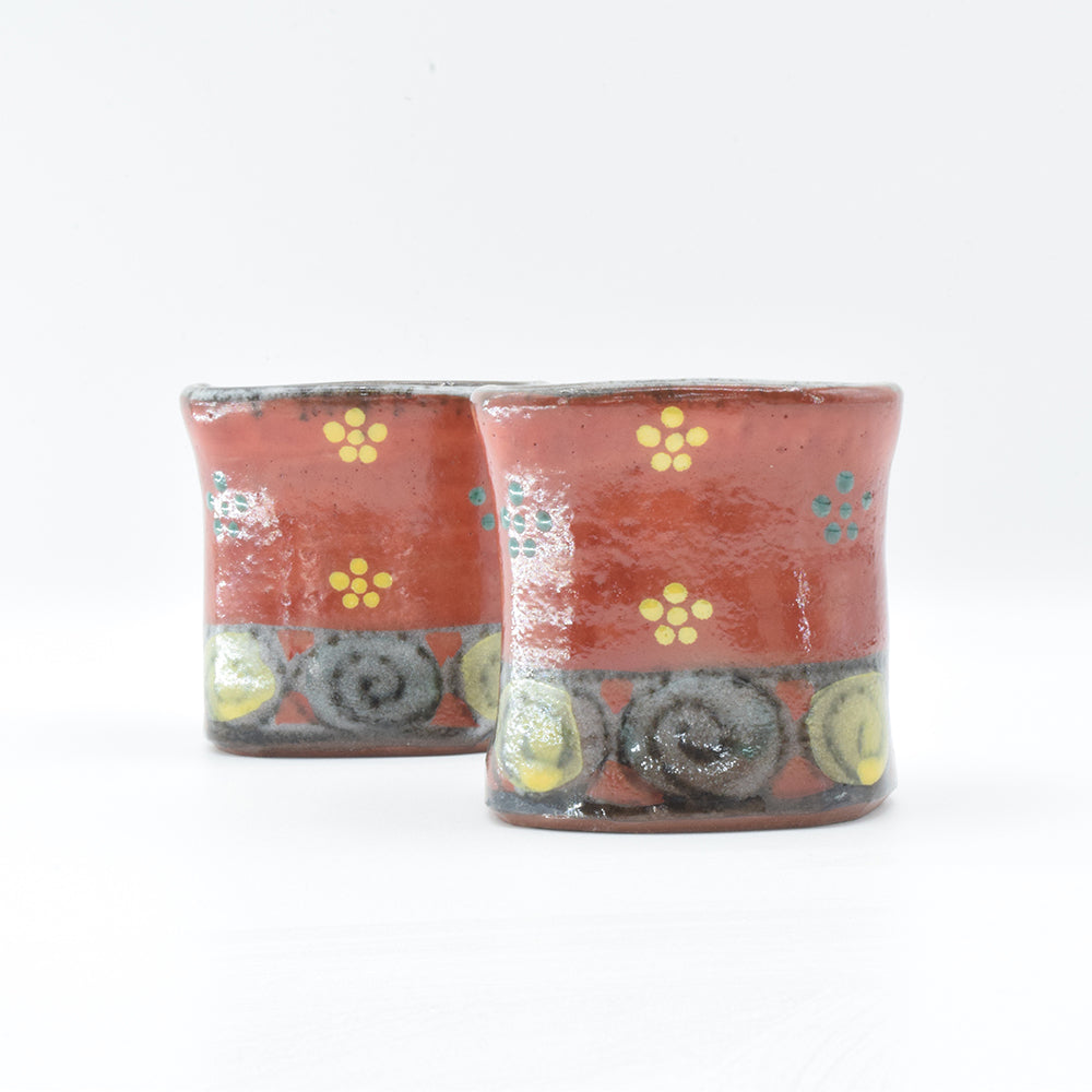 [Product name] Red-painted Umebachi-mon small tea set [Product description] Red-painted Umebachi-mon series with a colorful yet calming color scheme that catches the eye. This is a 3-piece set consisting of a teapot and 2 cups. An adult tea time item that is perfect for relaxing and enjoying a warm cup of tea with your guests.(Set contents) ・Teapot ・Drain x2 [Size] (Teapot) ・Height: 3.1" ・Width with handle: 5.8" ・Width without handle: 4.5" (Drain)・Height: 2.4" ・Diameter: 2.5" (weight) ・Teapot: 283g ・Dumping (1 piece): 121g ・Set: 532g Pottery stone, kaolin, etc.) Firing temperature: 1249°C, 14 hours Top paint: Conforms to the Japanese Food Sanitation Law (attached certificate) Top paint firing temperature: 800°C, 8 hours firing There are changes in - Size(MM)