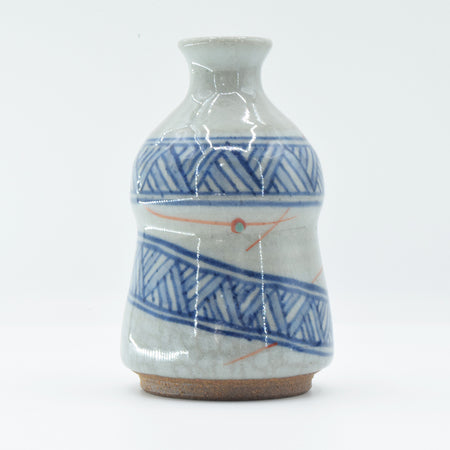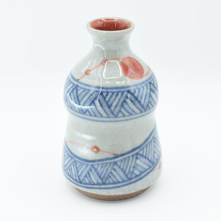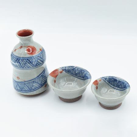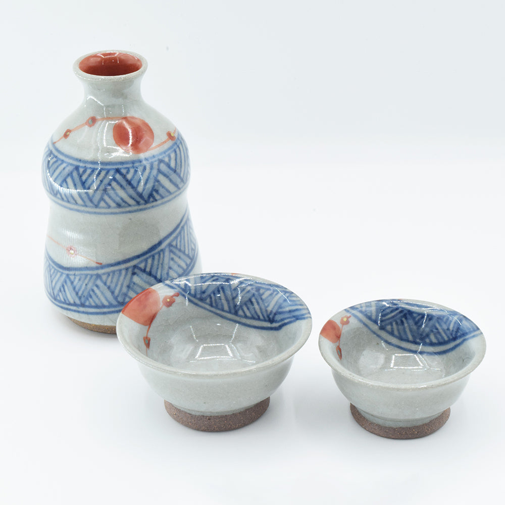 [Product Name] Sometsuke Akae Sake Set [Product Description] A cute tokkuri with a timeless and simple design that makes you feel the tradition is perfect for when you want to enjoy sake slowly and comfortably. This sake set is perfect for hot sake. Would you like to accompany your evening drink?(Set contents) ・Sake bottle/large distortion, small distortion 1 each [Size] (sake bottle) Height: 4.5" Width: 2.7" (large distortion) Height: 1.5" ・Diameter: 3" (Small distortion) ・Height: 1.3" ・Diameter: 2.5" (Weight) ・Sake bottle: 196g ・Large distortion: 73g ・Small distortion: 56g ・Set: 323g [Raw materials] Original soil: Made in Japan , Clay glaze: Made in Japan, Earth and stone raw materials (feldspar, limestone, pottery stone, kaolin, etc.) Firing temperature: 1249°C, 14 hours firing Top paint: Conforms to the Japanese Food Sanitation Law (attached certificate) Top paint firing temperature: Bake at 800℃ for 8 hours - Size(MM)