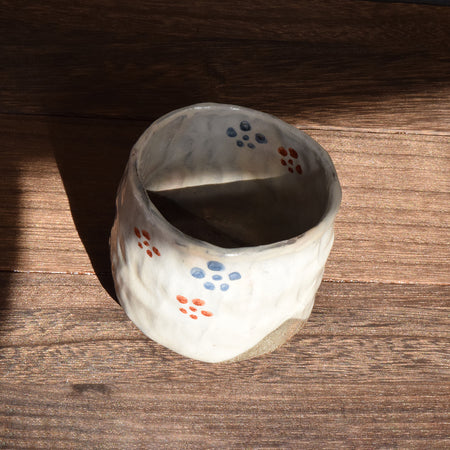 [Product name] Plenty of teacups with hand-formed dyed red picture plum bowl pattern [Product description] A comfortable distorted feeling unique to hand-formed. The fit when you wrap it in your hand is addictive. A large capacity teacup perfect for when you want to enjoy your favorite drink slowly.[Size] ・Height: 3.1" ・Diameter: 3.1" (weight) 206g Limestone, pottery stone, kaolin, etc.) Firing temperature: 1249°C, 14 hours firing Top paint: Conforms to the Japanese Food Sanitation Act (attached certificate) Top paint firing temperature: 800°C, 8 hours firing There are some changes. - Size(MM)