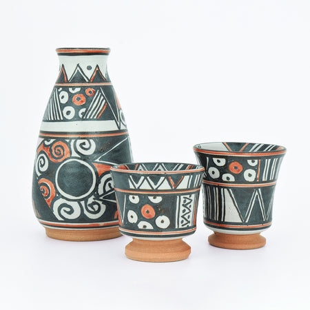 Pottery Hiryu Kuroda Kagasaburo Kiln sake set arabesque