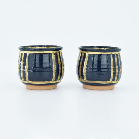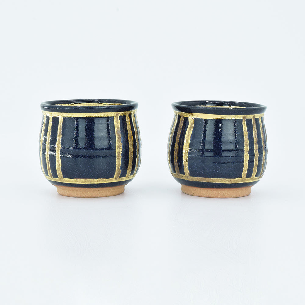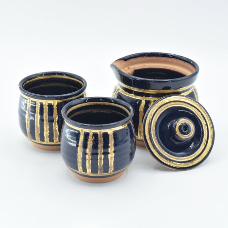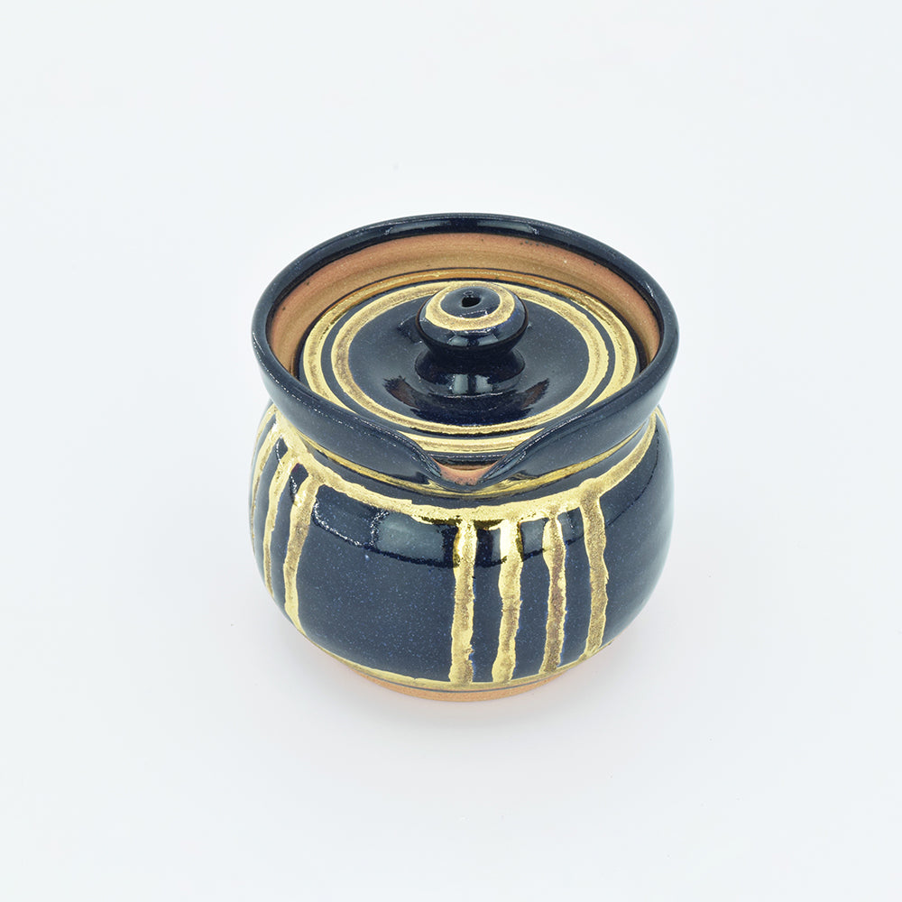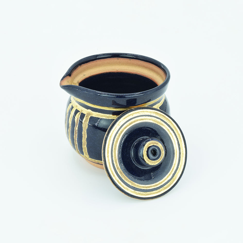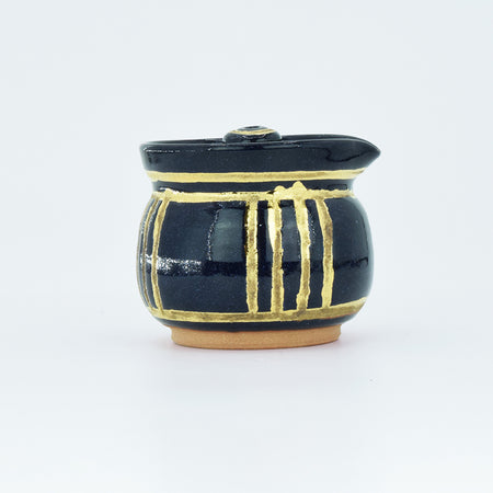 Pottery Hiryu Kuroda Kagasaburo Kiln sugar pot milk pitcher Gold Ruri glaze