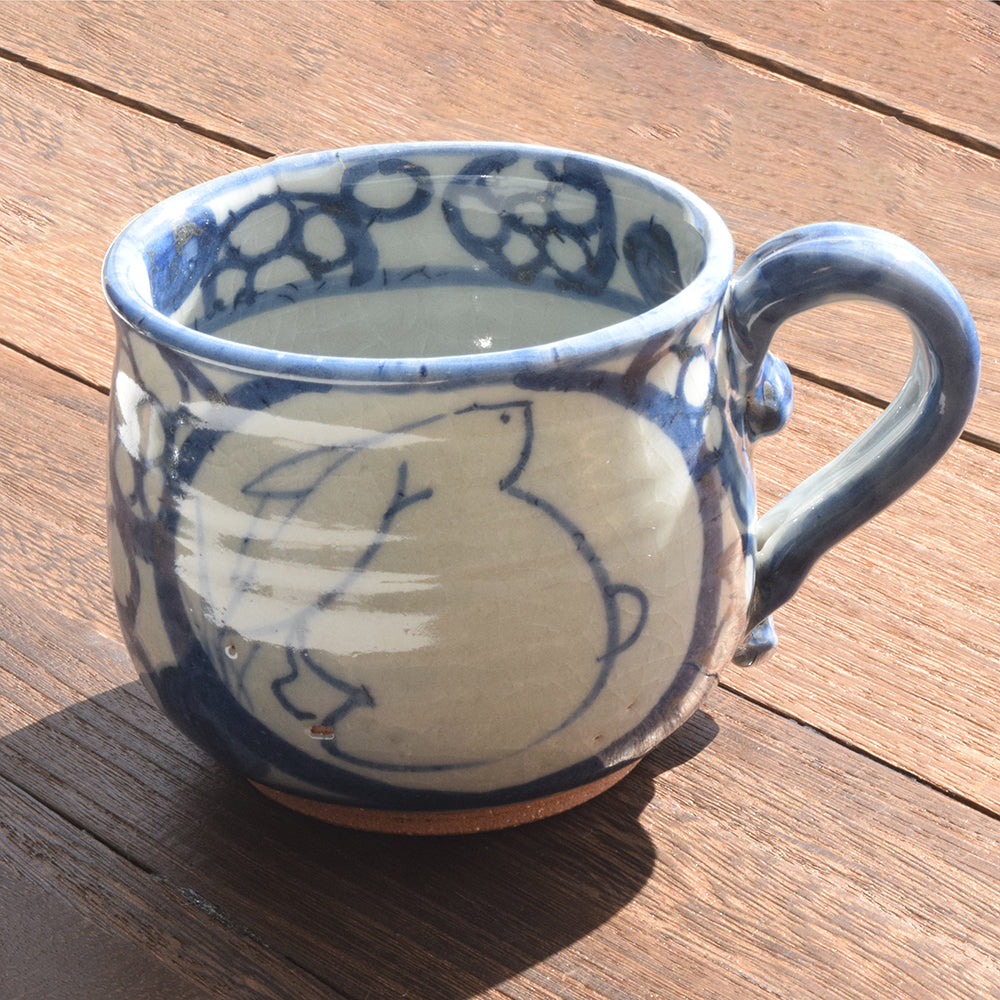 [Product name] Sometsuke Hana Usagimon Plenty of cups [Product description] A large cup with a round silhouette of a cute rabbit. With a width of 3.3", it is also recommended for pouring soup. It has a large capacity, so it is perfect for when you want to enjoy your drink slowly.(Set contents) 1 mag-cup [Size] ・Height: 3" ・Width with handle: 4.7" ・Width without handle: 3.3" (Weight) 237g [ Raw materials] Original soil: Made in Japan, Clay glaze: Made in Japan, Soil and stone raw materials (feldspar, limestone, pottery stone, kaolin, etc.) Firing temperature: 1249 ° C, 14 hours firing Paint: Compliant with the Domestic Food Sanitation Law (Attached certificate Calligraphy) High paint firing temperature: 800°C, 8 hours firing - Size(MM)