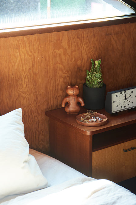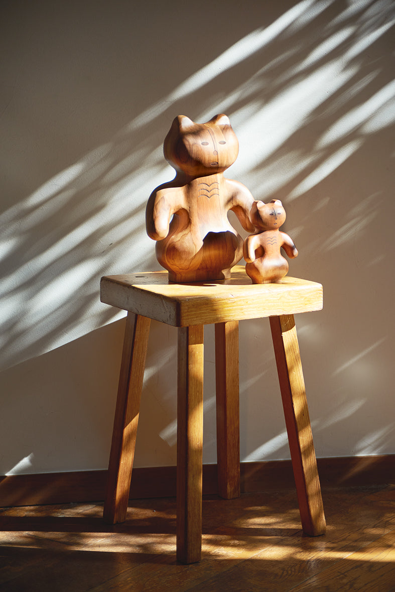 It was inspired from imaginative and diverse ancient "Dogu" clay doll.Its subtle,yet firm appearance gives pleasant atmosphere in the living space.