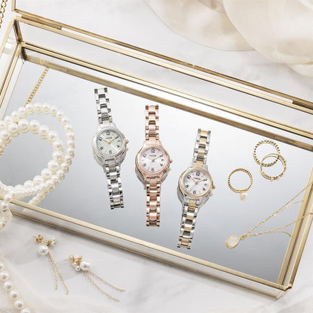 ・A new model in a combination of silver and warm gold colors joins the basic radio-controlled watch series.