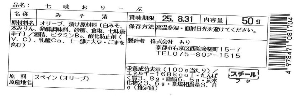 Kyoto Pickles Mori, Miso Flavor, Olive Pickles, Authentic Japanese Tsukemono - 50g (1.8oz) x 3Pack (150g / 5.3oz total)