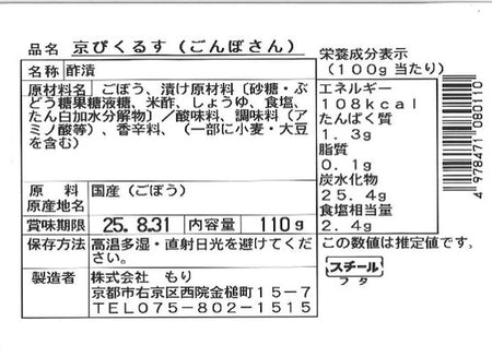 Kyoto Pickles Mori, Mild Sour Flavour, Japanese Burdock Root Pickles, Authentic Japanese Tsukemono - 110g (3.9oz) x 3Pack (330g / 11.6oz total)