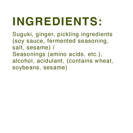 - Soy. Pickled Suguki Leaves - Finely chopped suguki greens pickled in soy sauce, offering a mild, tangy taste.