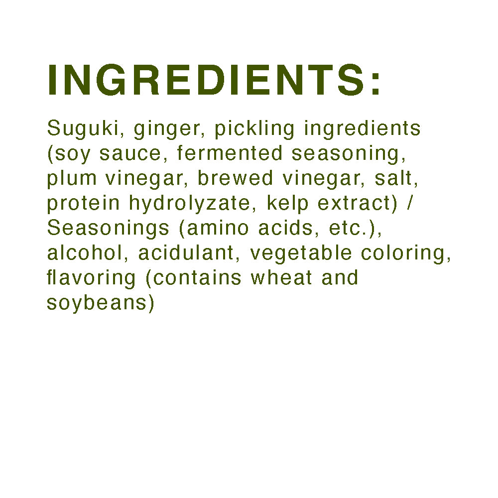 - Chopped Suguki & Ginger Pickles - Finely chopped suguki (a Kyoto specialty) combined with ginger for an exquisite balance. Great for ochazuke!