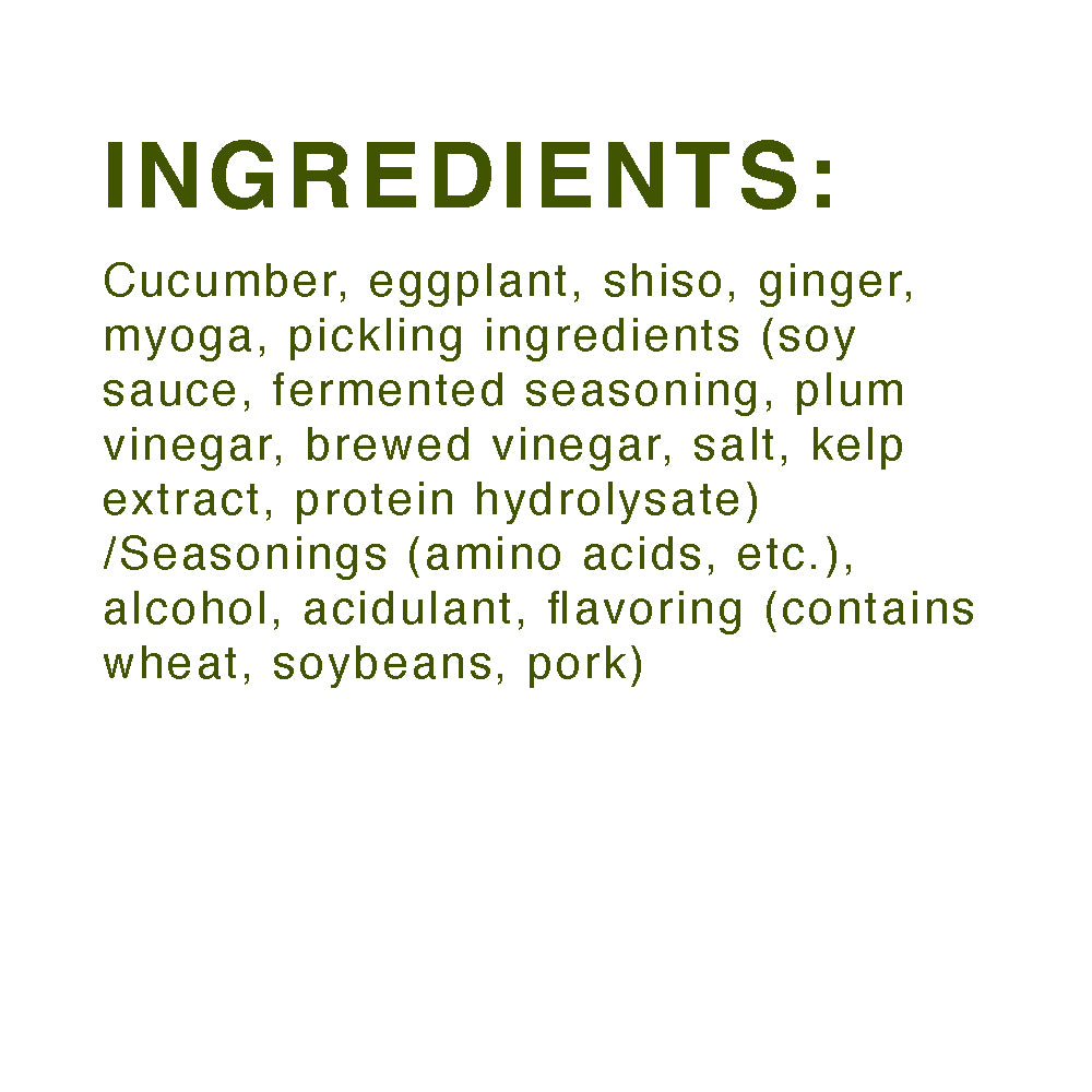 - Cucumber, eggplant, Japanese ginger, shiso leaves, ginger