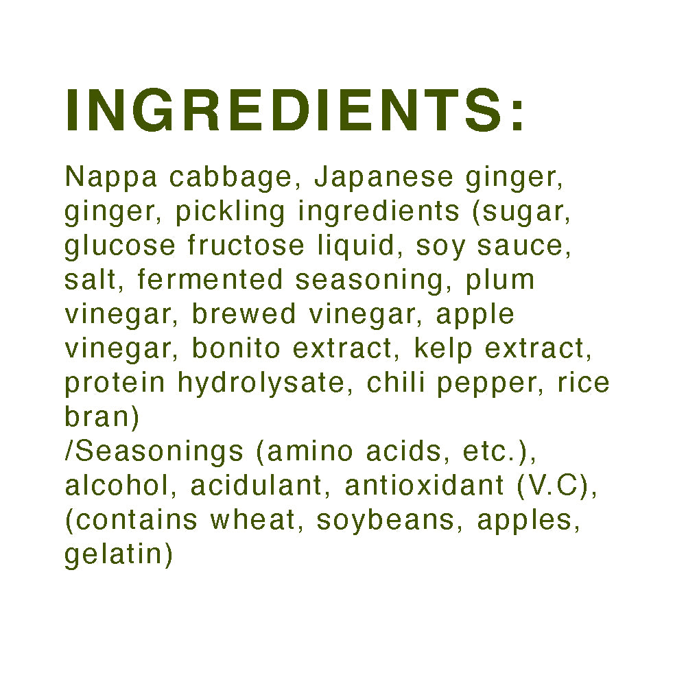 - Fermented Napa Cabbage Pickles - Naturally fermented with rice bran, bringing out the cabbage’s true flavor in a light, easy. to. eat form.