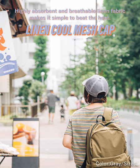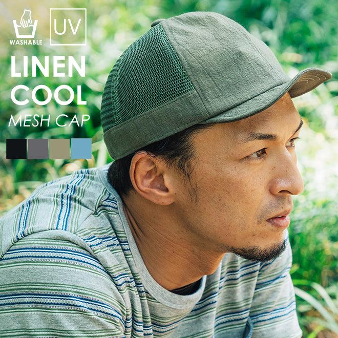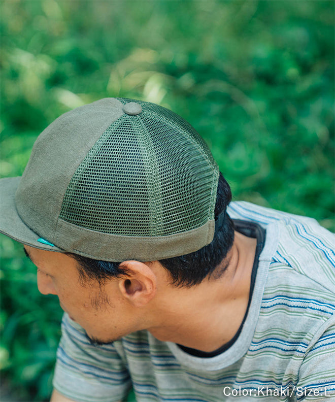 The unisex mesh cap of linen by nakota, a Japanese brand from Osaka.