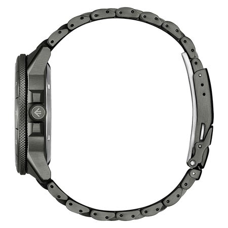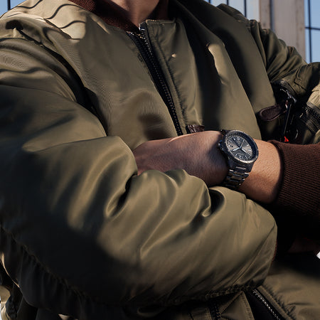 The lugs that connect the case and band are inspired by the aerofoils of an airplane as it glides through the sky.