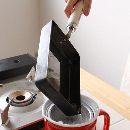 Material: Body: Iron (cold-rolled polished steel plate), Handle: Natural wood, Surface finish of body: Special heat treatment (nitrogen impregnation)
