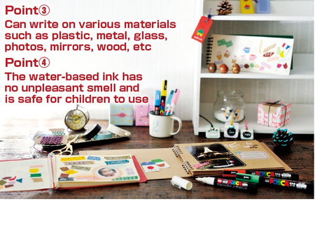 ・Posca Paint Marker Pen Medium point (PC-5M) 1.8mm~2.5mm Water-based pigment ink, non-toxic, lightfast and waterproof.