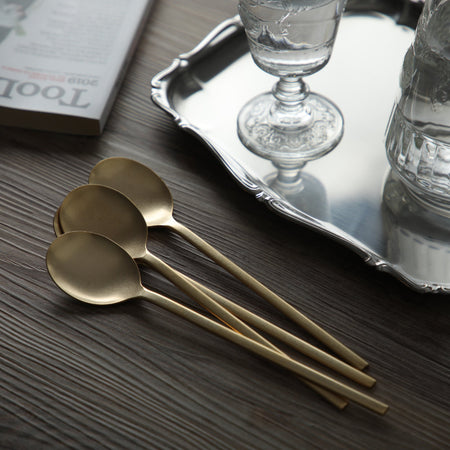 All stainless steel is processed in a vintage style, giving it an antique-like texture. The slightly dull champagne gold color is stylish and will brighten up your daily table.