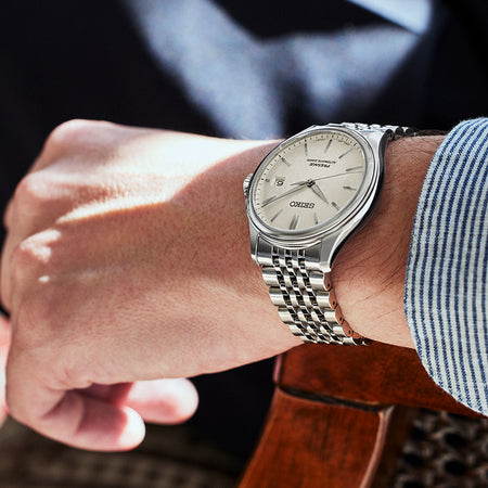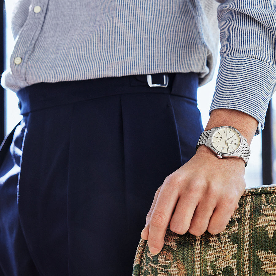 - By curving the hands and indexes to match the curved surface of the dial, the entire dial shines with a soft light.