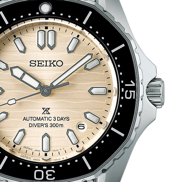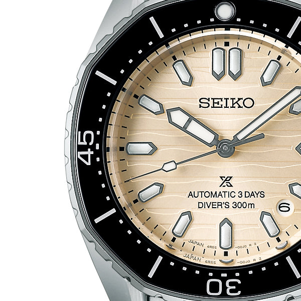 - Equipped with the new caliber 6R55 (3DAYS), it is also waterproof for air diving to 300m, and has the specifications of a full-fledged diver's watch.
