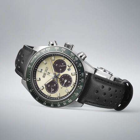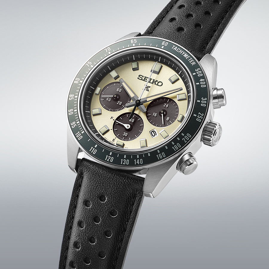 - The classic color scheme is inspired by the lightweight sports cars of the past, which are now rare, and the Speed Timer is equipped with a perforated leather strap for the first time.