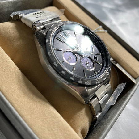・Enhanced waterproofing for everyday life (10 atm) ・Average monthly difference ± 15 seconds ・Driving period: Approximately 6 months when fully charged ・Date display ・24-hour display ・Chronograph (1/5 second measurement 60 minutes total) ・Screw back ・Tachymeter ・Lumibright (needle / index) ・With magnetic resistance ・Overcharge prevention function