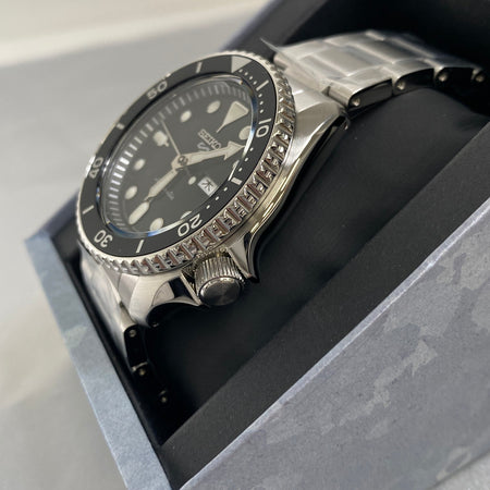 ・Enhanced waterproofing for everyday life (10 atm) ・Driving period: Lasts for about 41 hours at maximum hoisting ・Average daily difference +45 seconds to -35 seconds ・Date / day display ・Second hand stop function ・Bezel to prevent reverse rotation ・Lumibright (needle / index) ・Screw back ・Back skeleton ・24 stones ・With magnetic resistance ・made in Japan