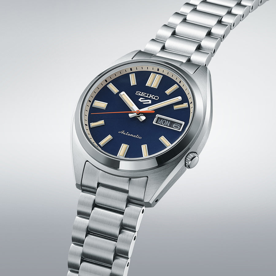 The 5 Sports models released since the 1970s are characterized by orange second hands and sporty dial colors.