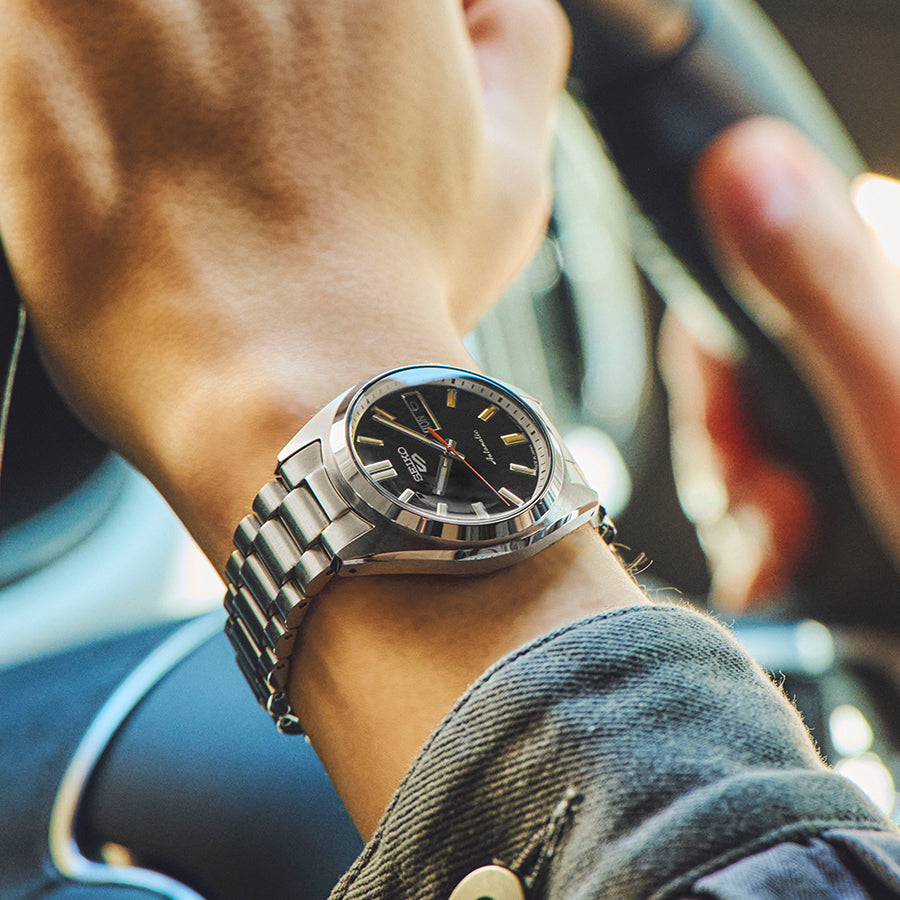 The center of gravity of the case has been lowered from the original, and the sides have been given a more defined look with a striped and mirror finish, resulting in a beautiful, classical design that fits comfortably on the wrist.